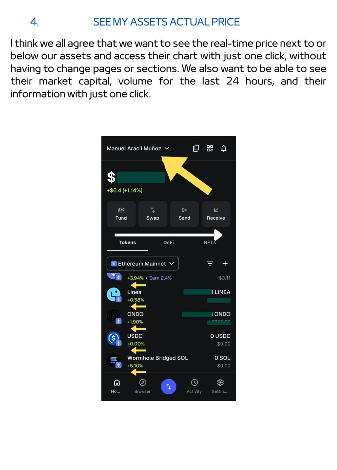 Content: This is another area that needs improvement. I think we don’t use about 10% of the content available in MetaMask because we have to search through the app’s nooks and crannies, discovering options, and logging in again.